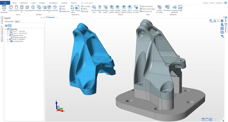 Thiết kế ngược dựa trên dữ liệu scan 3D. Kết quả của bước này là dữ liệu dạng surface hoặc solid, định dạng IGS hoặc STEP